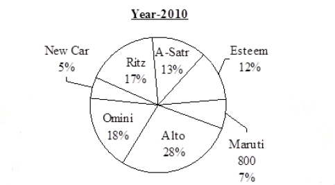 Pie Chart shows Percentage share of different cars in different years: