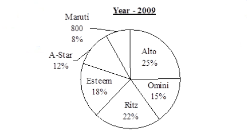 Referring to data in the previous question, i.e. total number of cars produced in 2008 is 1 Lakh, what is the percentage of Maruti Ritz produced in the year 2009, to that of the total car produced in the year 2008?
