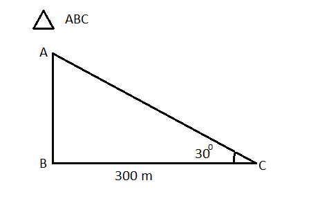 300 m from the foot of a cliff on level ground, the angle of elevation of the top a cliff in 30 degree. Find the height of this cliff.