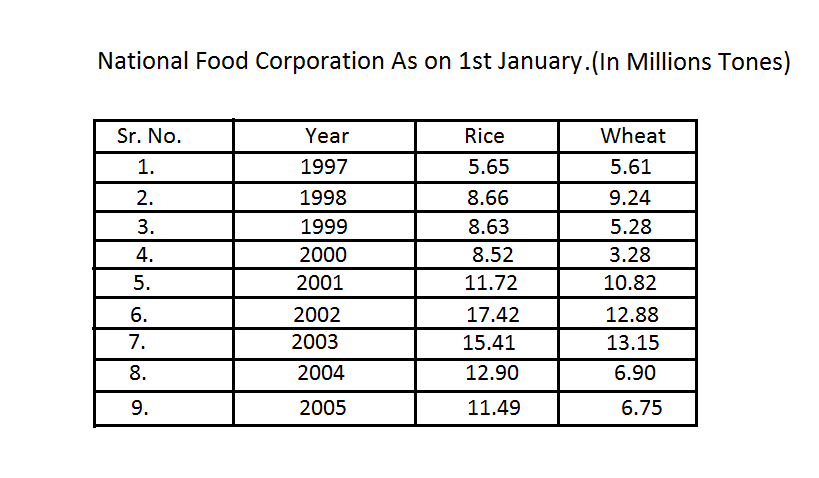 Direction(21 - 25):The table shows the national food corporation as on 1st January,(in million Tones) from 1997 to 2005.